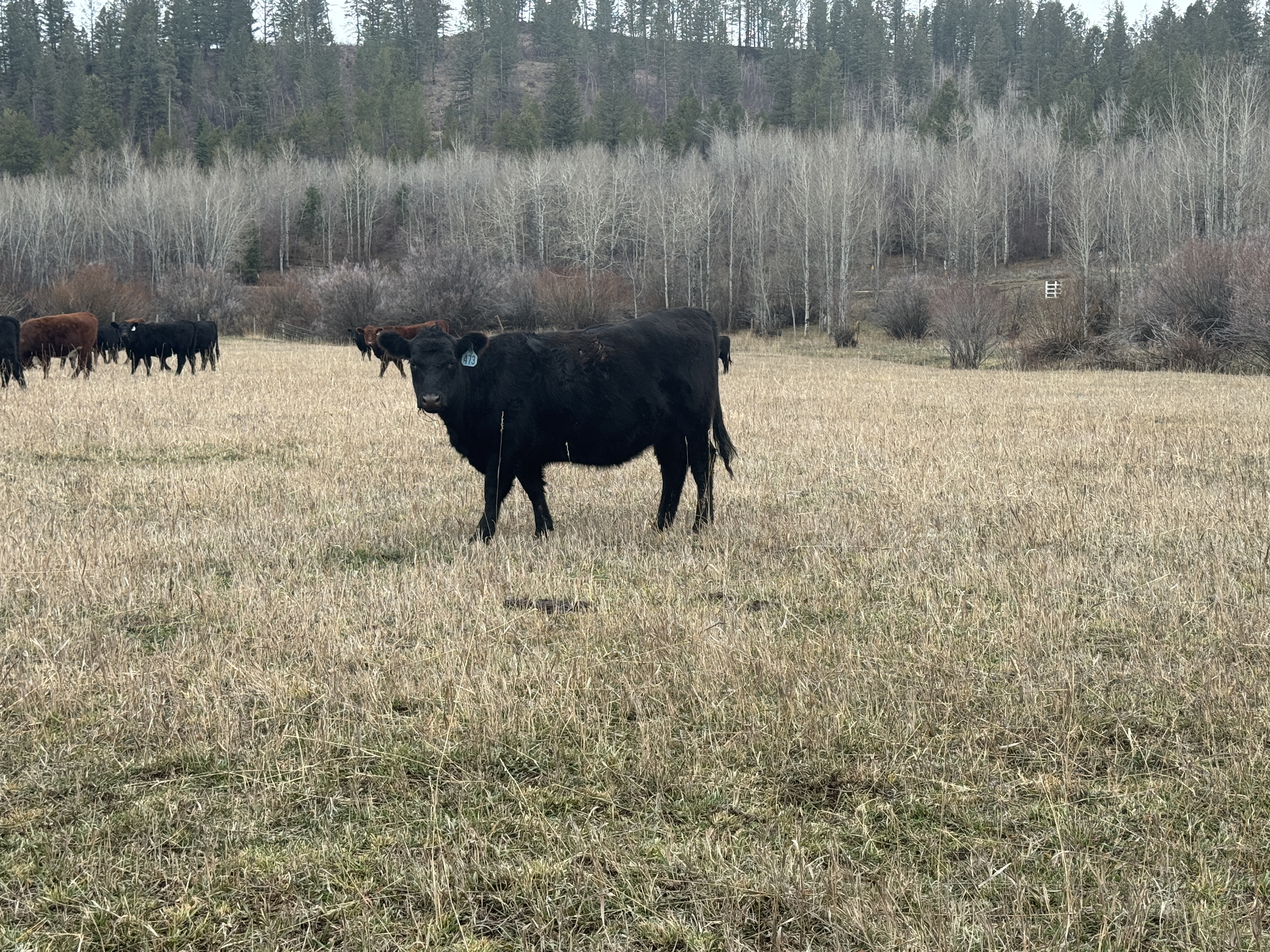 18 Heavily influenced PCC bred heifers. Calving window 5/1/2026 – 6/15/2026. 16 of 18 pregged to delivery a calf in May and 2 in June. Bred to a calving ease 1/2 Black Angus 1/2 South Poll (black hided). The bred heifers are predominantly Black Angus with a few Red Angus.