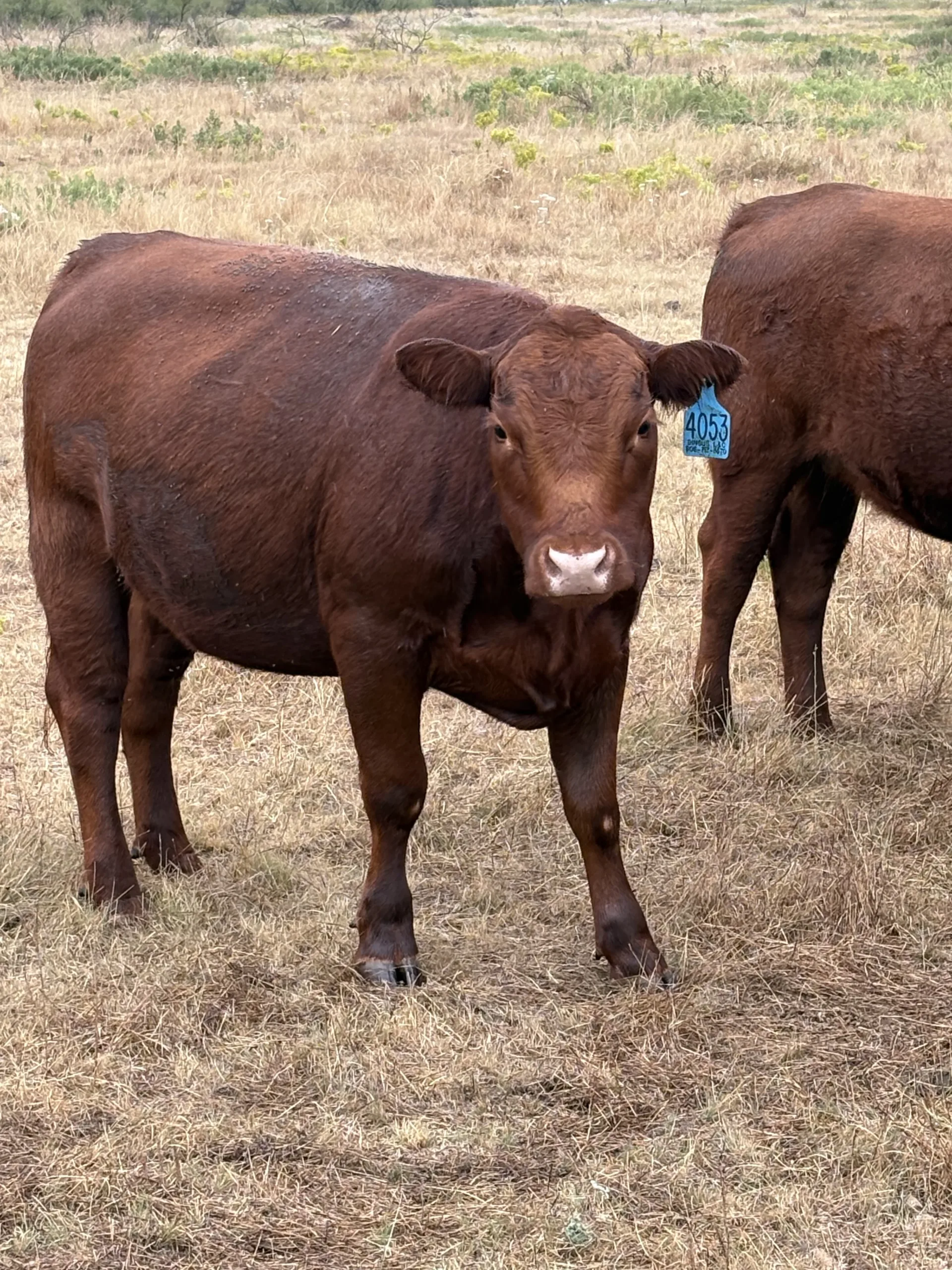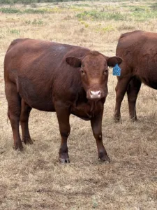 20 head of red and red white faced heifers. 30 day calving period starting first week of May. Bred to PCC heat tolerant bulls. Heifers raised here in a low input rotational grazing system so they are hotwire broke. Handled horseback and are broke to feed wagon or feed sack.