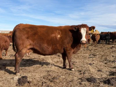 We have raised numerous 4H/FFA steers and heifers out of this cow. Her calves compete well in our local fair. Even bred to PCC bulls, she still adds plenty of bone, style and thickness. Not your typical club-cow. She runs out with our main herd and doesn’t get any special treatment. She is a little bigger than our PCC cows (1500+ lbs @ BCS 8). She is getting a little age on her, and my kids are older and not showing anymore. She is registered with Red Angus (3524525). She was bred to a 5-star calving-ease PCC bull (4767765) on 7/29 to calve on 5/5/2026. She is sound with a great udder. She was halter-broke as a calf and shown as a yearling. Her dam has done a great job in our herd and just came up open this year at 13 years old. (Bull picture is her sire). Would love to see her go to a good home. $4500, obo.