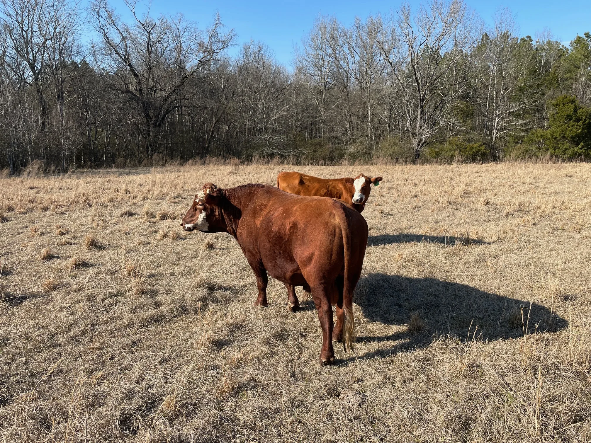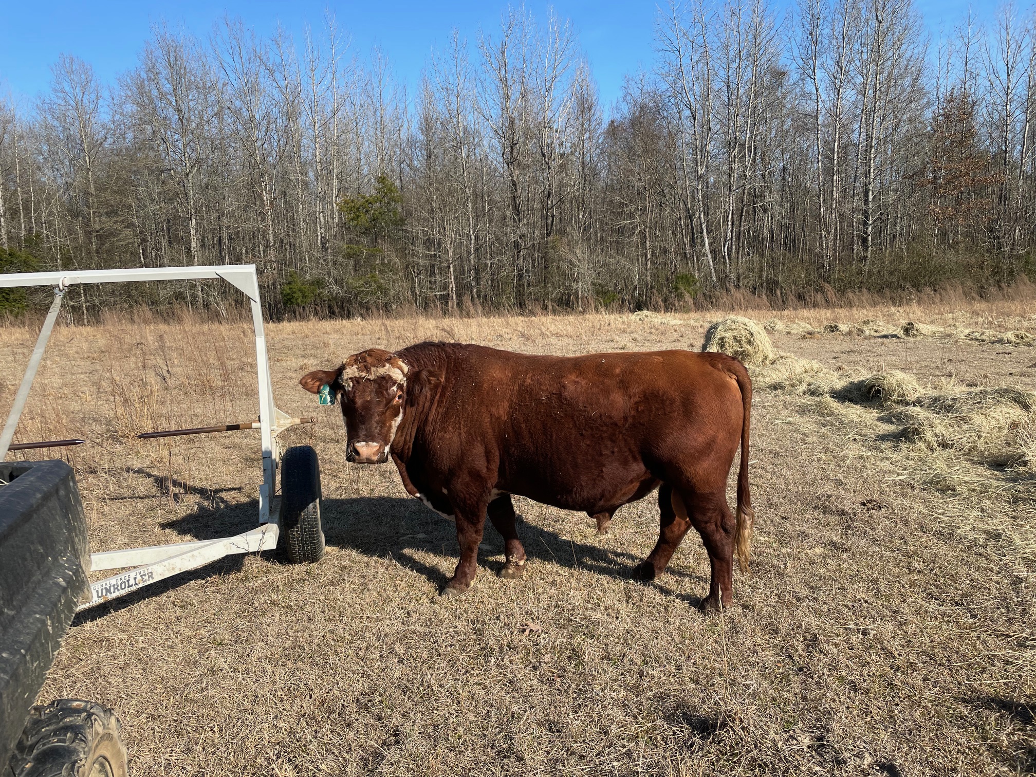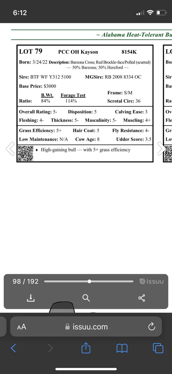 Pharo Heat Tolerant Barzona/Hereford Bull. Born March ’22. I bought at Fall ’23 Alabama sale. Stays fat on poor quality forage. Gentle. No calving trouble. Reason for selling: I have a small herd and am keeping heifers from last 2 breeding cycles. 4500 or possibly trade for 2 breeding age heifers.